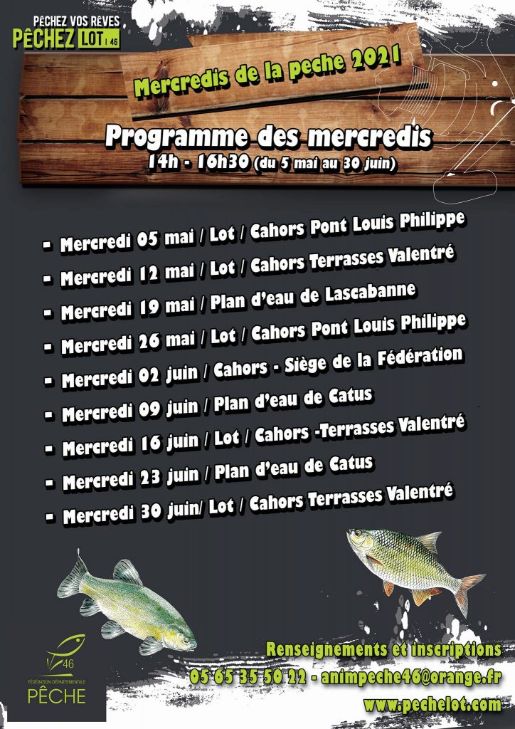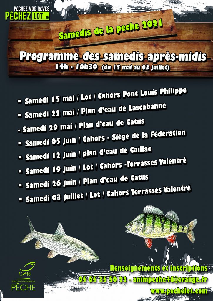 Inscriptions auprès de la Fédération de pêche du Lot (133 quai Albert Cappus – 46000 Cahors – animpeche46@orange.fr). Tél. : 05 65 35 50 22. Attention jauge limitée.